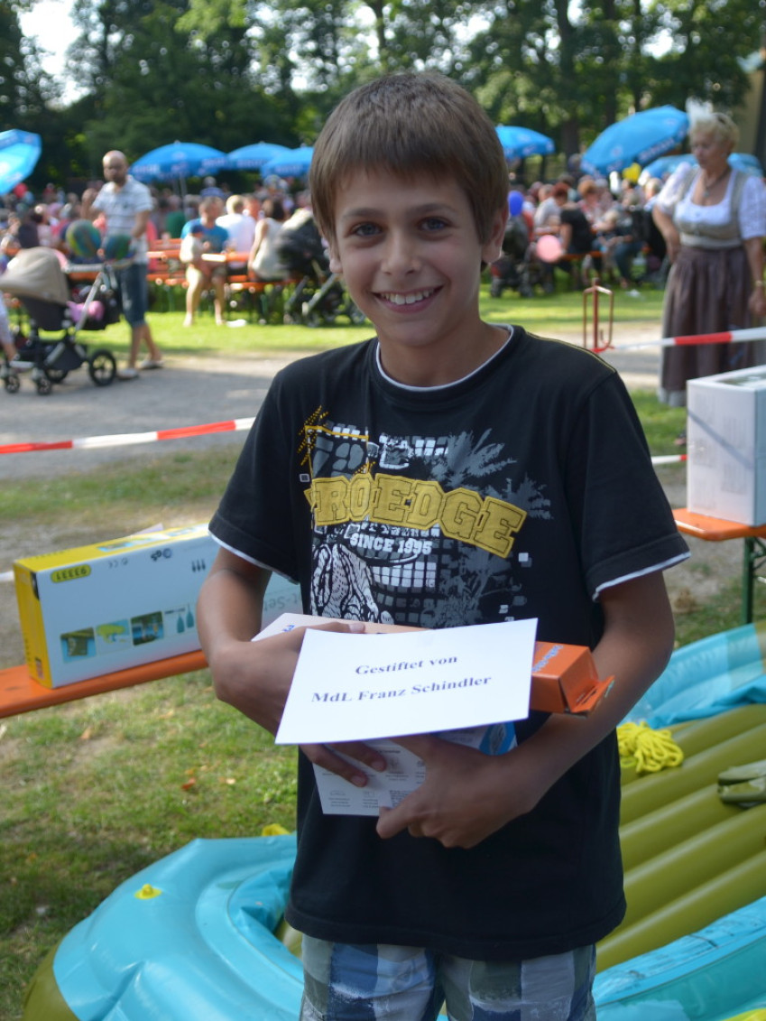 Vor der Ziehung der Gewinner der Tombola verschenkte der SC Teublitz noch Fußbälle an die Kinder, die den Fußball-Slalom am schnellsten absolviert hatten. Gegen Ende des Festes fand dann die große Verlosung statt, bei der es wieder zahlreiche attraktive Preise zu gewinnen gab, die von den Teublitzer Gewerbetreibenden und verschiedenen Mandatsträgern gestiftet worden waren.