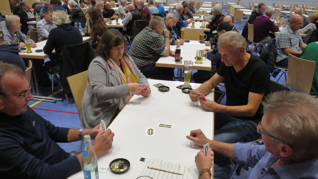 136 Schafkopffreundinnen und -freunde aus der näheren und weiteren Umgebung waren am Samstag, den 22. Oktober zu unserem Preisschafkopf in die Teublitzer Dreifachturnhalle gekommen.
