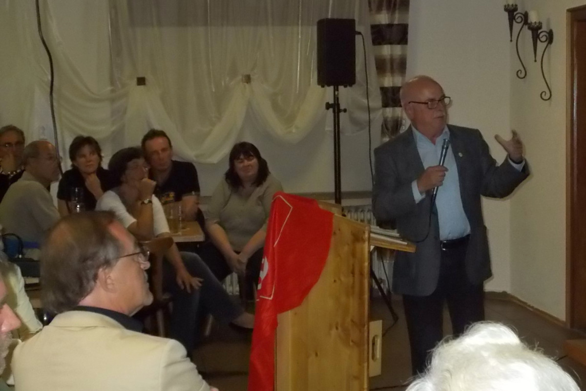 Vor dem vollen Saal des Ristorante "Delizia" informierten Christa Hecht, Geschäftsführerin der Allianz der öffentlichen Wasserwirtschaft e.V. (AöW) in Berlin, und Sebastian Schönauer, Landesvorsitzender der Interessengemeinschaft Kommunale Trinkwasserversorgung in Bayern (IKT) und stellvertretender Landesvorsitzender des Bund Naturschutz in Bayern (BN) über gesetzliche Grundlagen und mögliche Probleme bei einer Ansiedelung eines Abfüllbetriebs und einer damit verbundenen Steigerung der Förderung von Tiefengrundwasser in Teublitz.