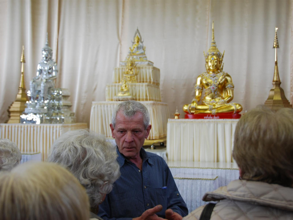 Bei seiner Begrüßung gab SPD-Ortsvorsitzender Josef Bitterbier einen kurzen Rückblick über die kommunalpolitischen Entwicklungen, die dazu geführt hatten, dass das Schulhaus in Katzdorf nicht mehr für den Unterricht genutzt und schließlich von der Stadt Teublitz an den Verein „Ruam Jai Pak“ veräußert wurde. Der stellvertretende Vorsitzende von „Ruam Jai Pak“, Hans Wiesner, hieß daraufhin die Gruppe herzlich willkommen und informierte sie über den Tagesablauf der Mönche, die im Meditationszentrum leben. Sie kommen jeweils für einige Monate aus Thailand bzw. aus ähnlichen Zentren in Nürnberg oder Wiesbaden, was immer auch einigen bürokratischen Aufwand für die notwendigen Genehmigungen mit sich bringt. „Ihr Lebensunterhalt muss vom Verein und aus Spenden bestritten werden und wird nicht staatlich bezuschusst“, so Wiesner. Des Weiteren erklärte er einige Grundbegriffe der buddhistischen Religion sowie traditioneller buddhistischer Feste. Zum Abschluss seiner Worte gab er einen Ausblick auf die Umbaumaßnahmen, die im ehemaligen Schulhaus in der nächsten Zeit geplant sind, und beantwortete bereitwillig alle Fragen.