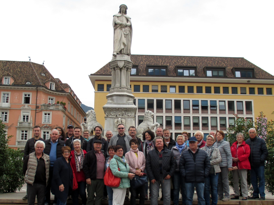 Auf dem Programm stand neben einer Stadtführung in Bozen und einer Weinprobe mit Weinbergführung in Kloster Neustift auch ein Törggelen-Abend mit traditioneller Musik. Nachdem sie bei sonnigem Spätsommerwetter noch den Brot- und Strudelmarkt in Brixen besucht hatten, kehrten die 30 Teilnehmerinnen und Teilnehmer aus dem Städtedreieck am Sonntag wieder wohlbehalten nach Hause zurück.
