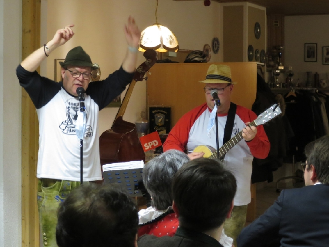 Für die Musik war in diesem Jahr die „Luisss Leitn Musi“ aus Schierling zuständig. Mit „ehrlicher, frecher, schneidiger Wirtshausmusi“ und Witzen sorgten sie für ausgelassene Stimmung im Saal. Stadtrats- und Kreistagskandidaten der SPD-Ortsvereine Katzdorf, Münchshofen und Teublitz spielten den Sketch "Die historische Sitzung". Gemeinderäte diskutierten dabei über Argumente für eine Erhebung ihres Dorfes zur Stadt, damit ihre Frauen künftig zu Fuß „in d’Stod“ gehen können. Für das leibliche Wohl sorgte in bewährter Manier das Team der Parkschützen.