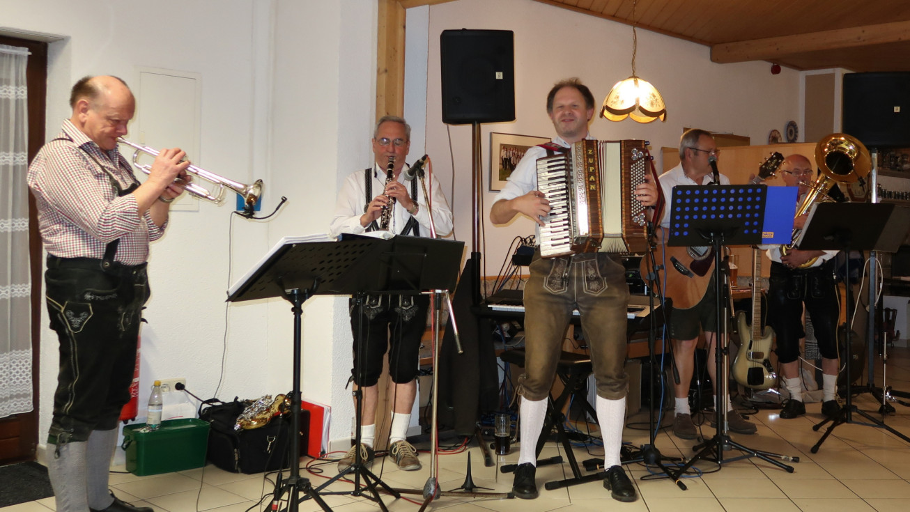 Die musikalische Unterhaltung übernahm diesmal „Boarisch-Oberkrain“ mit Musikern aus dem ganzen Landkreis, die sowohl „fetzig“ als auch traditionell aufspielten und für gute Stimmung sorgten. Den Auftakt des weiteren Programms setzten Frank Pabst als Maler Jean-Luc mit seinem Assistenten Martin (Roidl), die mit den Gästen sprechende Bilder „malten“.